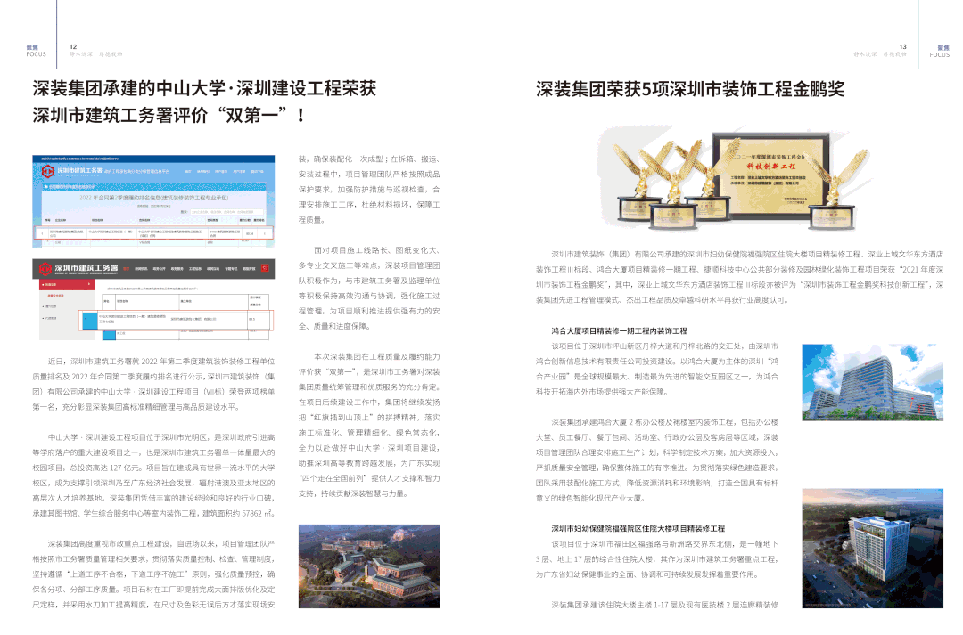 ● 深裝集團(tuán)承建的中山大學(xué)·深圳建設(shè)工程榮獲深圳市建筑工務(wù)署評價“雙第一”!