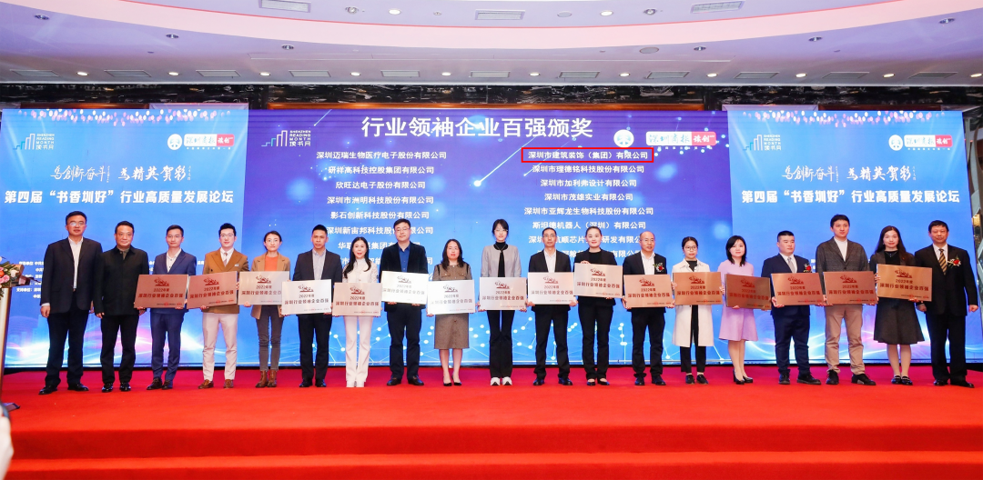 近日,由深圳市行業(yè)領(lǐng)袖企業(yè)發(fā)展促進(jìn)會(huì)及深圳商報(bào)/讀創(chuàng)客戶端共同主辦的第四屆“書(shū)香圳好”行業(yè)高質(zhì)量發(fā)展論壇暨行業(yè)領(lǐng)袖新青年、2022深圳行業(yè)領(lǐng)袖企業(yè)百?gòu)?qiáng)頒獎(jiǎng)典禮在深圳市福田區(qū)隆重舉行。