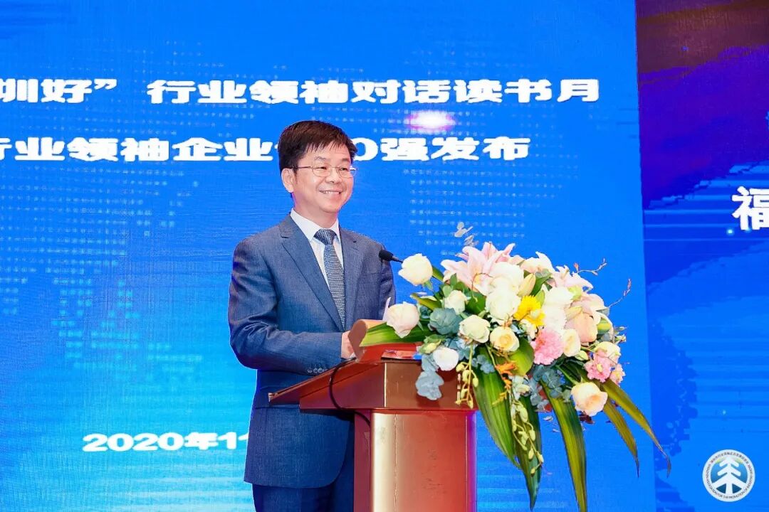 “書香圳好”,如期而至。11月30日下午,由深圳市行業(yè)領(lǐng)袖企業(yè)發(fā)展促進(jìn)會與《深圳商報(bào)》&讀創(chuàng)共同承辦的“書香圳好”行業(yè)領(lǐng)袖企業(yè)對話讀書月暨2020深圳行業(yè)領(lǐng)袖企業(yè)100強(qiáng)頒獎典禮,在深圳市福田區(qū)隆重舉行。深圳市行業(yè)領(lǐng)袖企業(yè)發(fā)展促進(jìn)會執(zhí)行會長,深裝集團(tuán)黨委書記、董事長、總裁吳富貴出席盛典并作致辭。